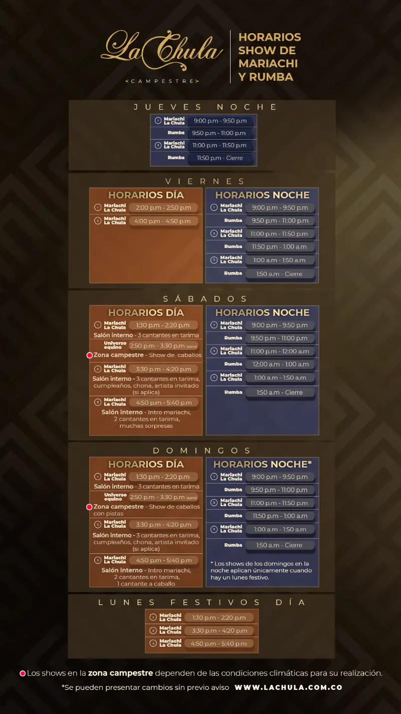horario del mariachi y rumba en La Chula