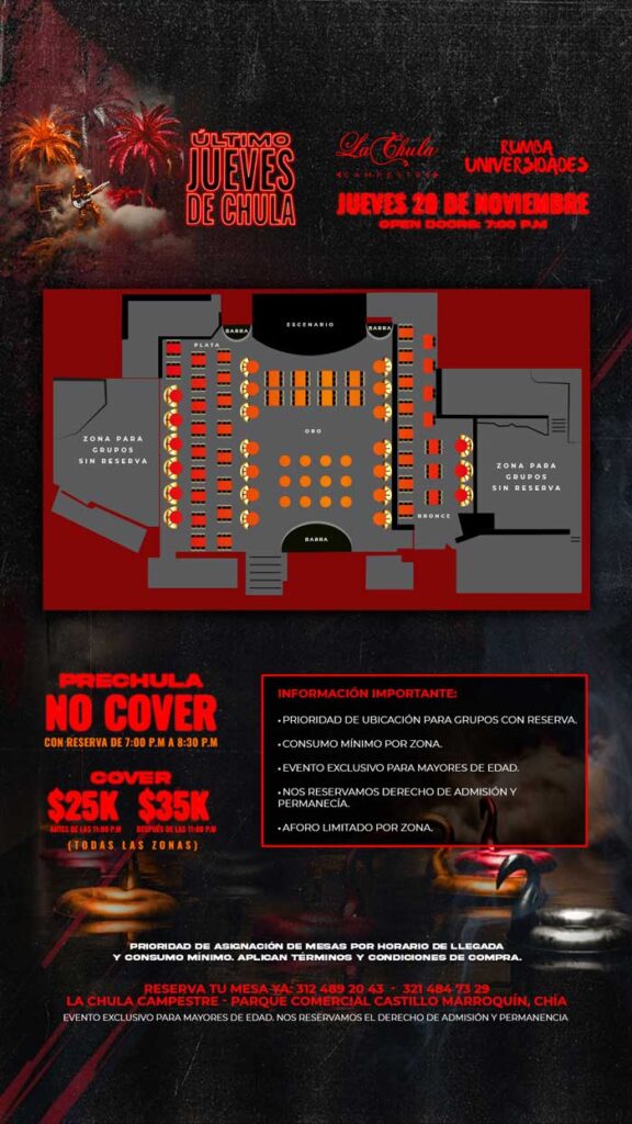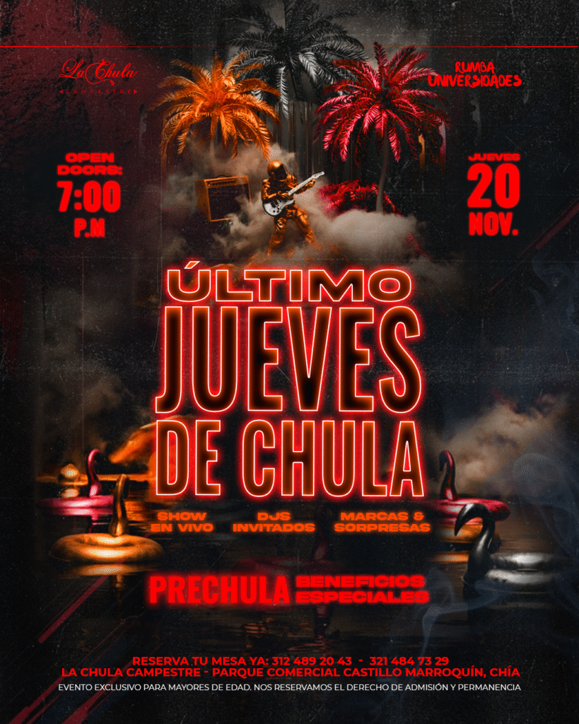 RUMBA UNIVERSIDADES TE TRAE EL ÚLTIMO JUEVES DE CHULA, QUE SERÁ PURO DESCONTROL CON SHOWS EN VIVO, MUCHA RUMBA Y SORPRESAS PARA LLEVAR LA LOCURA AL MÁXIMO ¡NO TE LO PUEDES PERDER!